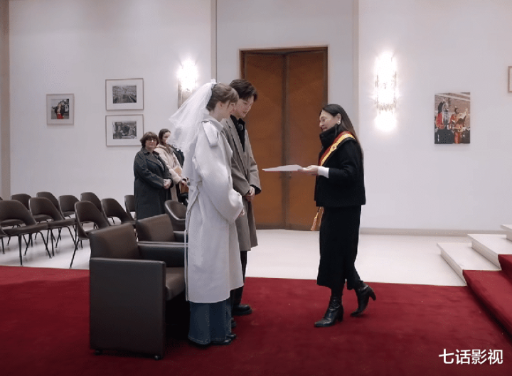 两人在比利时登记的时候(他们已经结婚5年,前期只在国内领证,直到节目拍摄才在比利时领证),阿诺母亲特地给女儿准备了头纱。